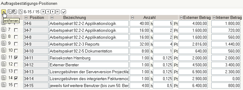 Falls nicht das gesamte Angebot beauftragt wird, können in der Auftragsbestätigung die Änderungen hinterlegt werden. Im Beispiel werden zwei Positionen markiert und …