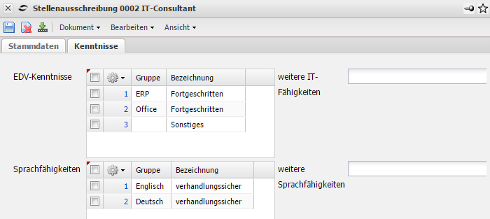 …währenddessen auf dem Reiter Kenntnisse die Fähigkeiten definiert werden können, die für die vorliegende Stellenausschreibung benötigt werden.