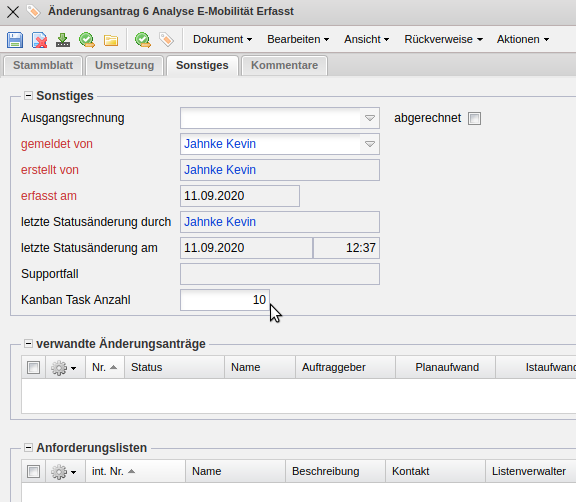 Im Dokument Änderungsantrag lässt sich über “Kanban Task Anzahl” ein Ticket in n Teilschritte aufteilen.