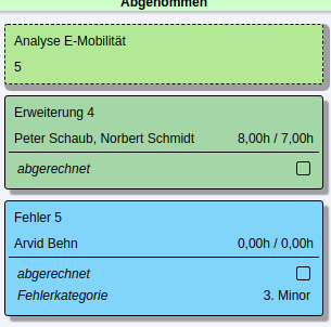 Bei diesem Beispiel wird die Fehlerkategorie angezeigt und ob das Ticket schon abgerechnet wurde.