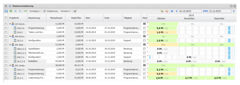 Die projektübergreifende Ressourcenplanung unterstützt auch die periodische Planung: