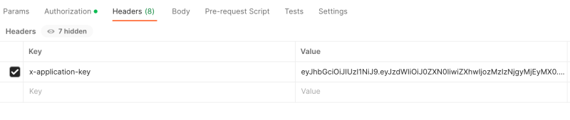 Beachten Sie, dass der Request die oben beschriebenen Header für Autorization und application-key enthält.